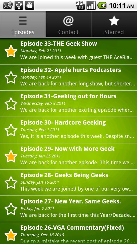 I am proud to announce that The GeeksFTW now has a Podcast App for the Android! I have provided screen shots of how the app will look. Some features of the App includes easy ways to call the show’s voice-line, email, twitter, Facebook, wallpapers, and bonus content. The app costs $1.99 and will be continued to be supported.  Bonus content will start with Episode 36 exclusively for our fans who support us for getting the App.  You can fine the app by searching  The GeeksFTW on the Android Marketplace or Click This Link. We appreciate any and all support for our new Android App. And Please Tell A Friend!